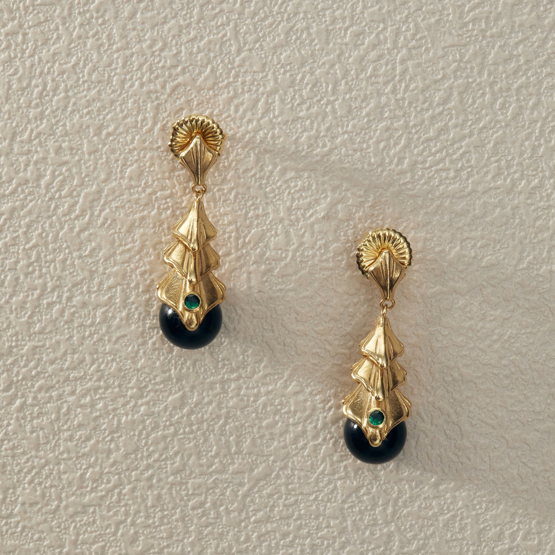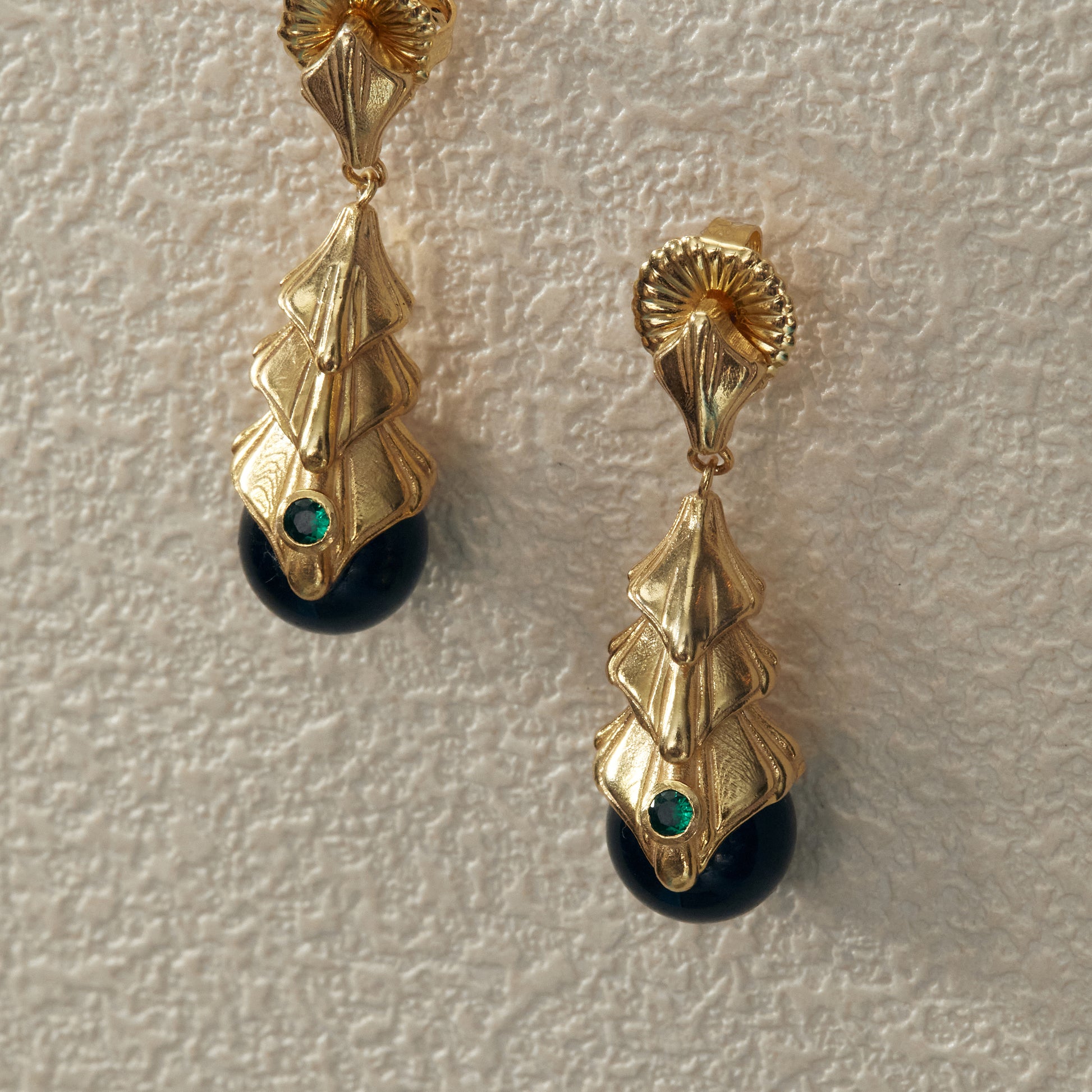 Obsidian Earrings - Gold Plated Brass